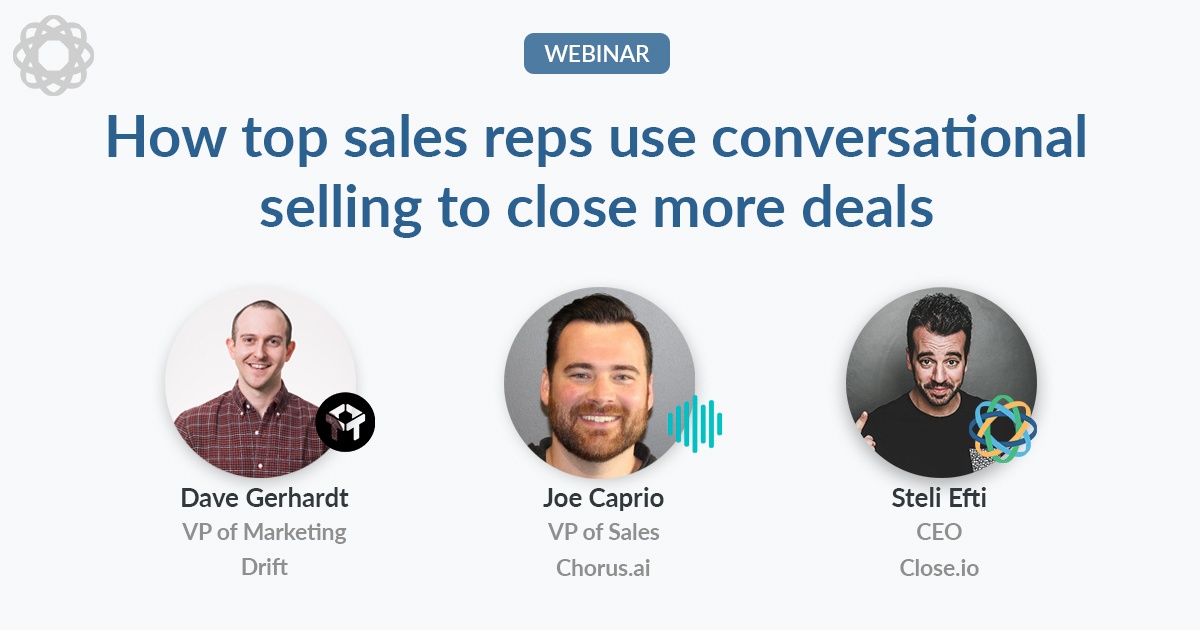 Next week, we're hosting a new live webinar about how to use conversational selling to close more deals with our friends from Drift and Chorus.ai.